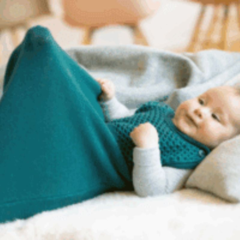 Het been- en buikgedeelte van de wollen slaapzak is van een lossere weving gemaakt. Hierdoor is de stof rekbaar en heeft je baby voldoende bewegingsvrijheid om zich comfortabel te bewegen.