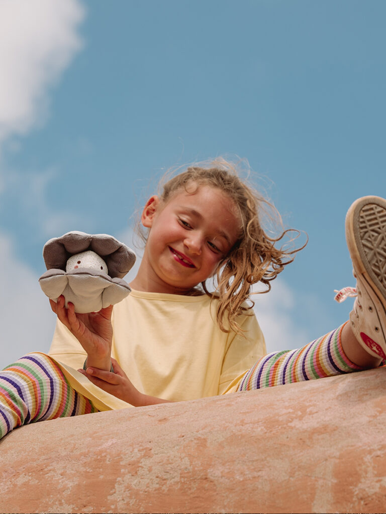 Ontdek het schattige Picca Loulou Oester Knuffeltje, deel van “The Oyster Twins”. Met liefde handgemaakt en gevuld met gerecycled materiaal, brengt dit duurzame knuffeltje vreugde en creativiteit in elke kinderkamer. Perfect als cadeau en decoratie, straalt het magie en geluk uit in de wereld van jouw kleintje.