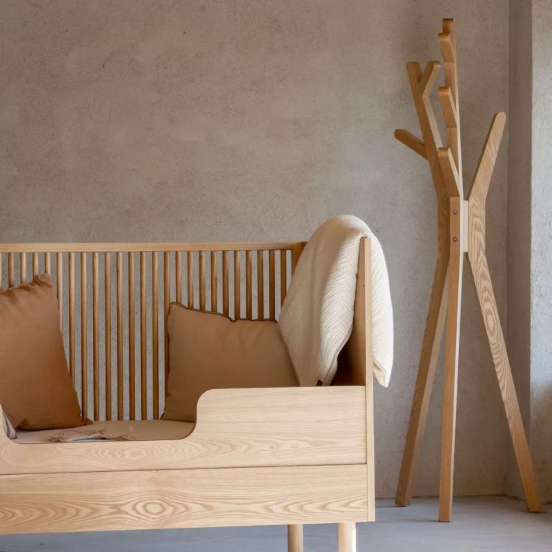Quax babykamer kapstok Natural Ash Veneer is een stijlvolle babykamer kapstok die niet alleen praktisch is, maar ook een warme en natuurlijke uitstraling geeft aan de ruimte. Met een hoogte van 170 cm biedt deze babykamer kapstok voldoende ruimte om babykleertjes, jasjes en andere benodigdheden netjes op te hangen. Zo blijft de babykamer overzichtelijk en georganiseerd, ook tijdens drukke momenten in het ouderschap.