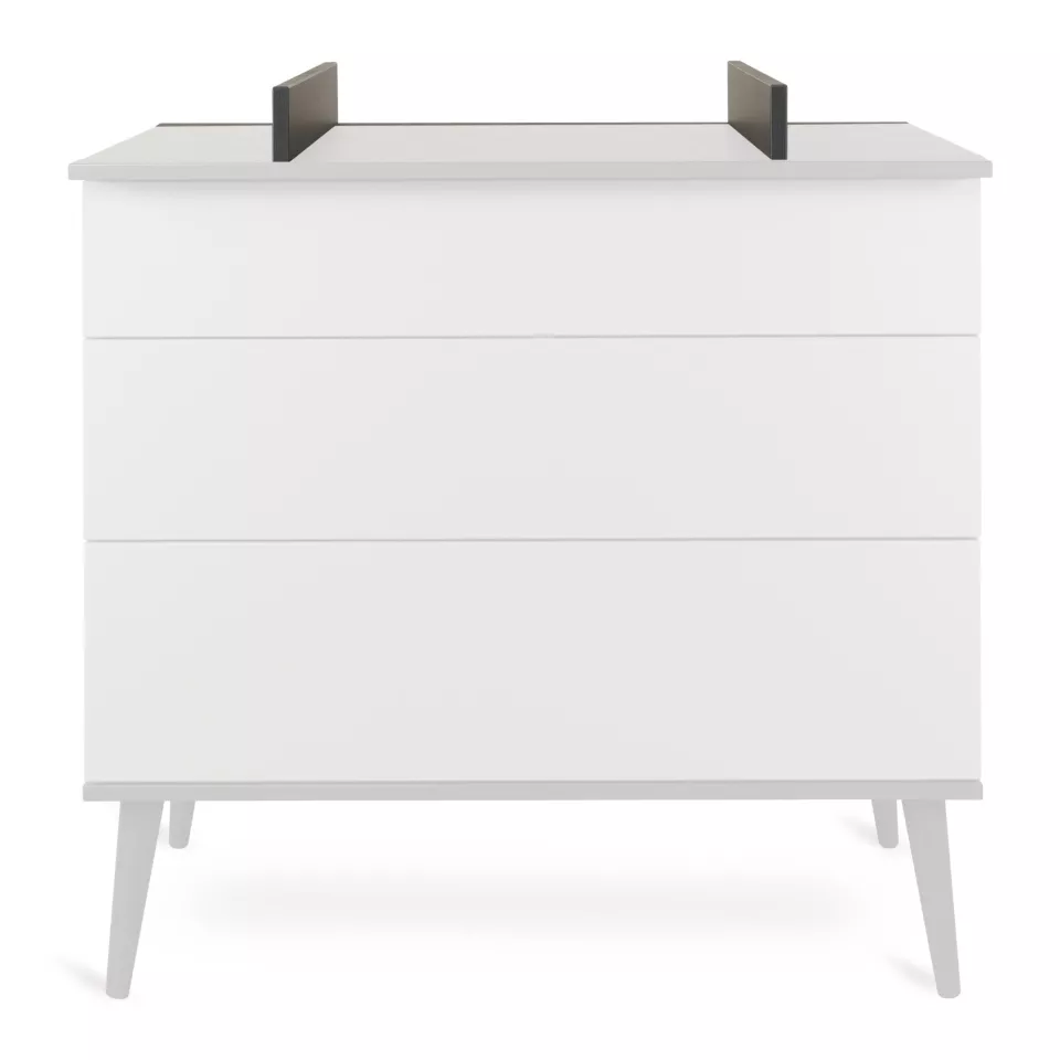 Dankzij het handige bevestigingssysteem is de extensie snel en eenvoudig op de Flow Commode te monteren en te verwijderen. Dit biedt flexibiliteit en gebruiksgemak in de kinderkamer.