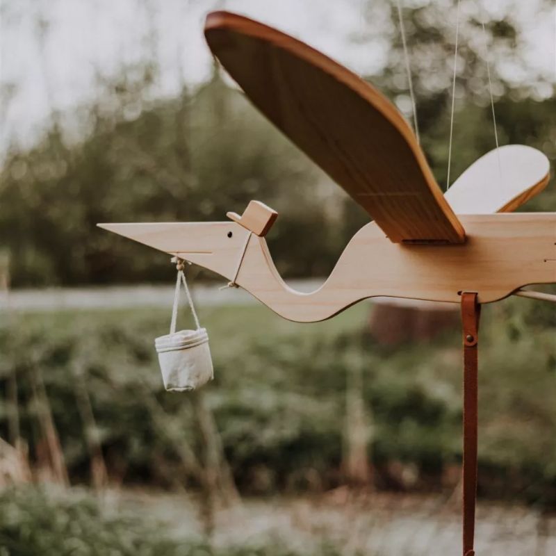 Met een afmeting van 95 x 107 x 18 cm vormt deze houten mobiel het kloppende hart van de kamer. Hier ontstaan dromen en kleine avonturen. Laat je inspireren door de eenvoudige schoonheid van de pelikaan en het diepgaande verhaal dat hij vertegenwoordigt.