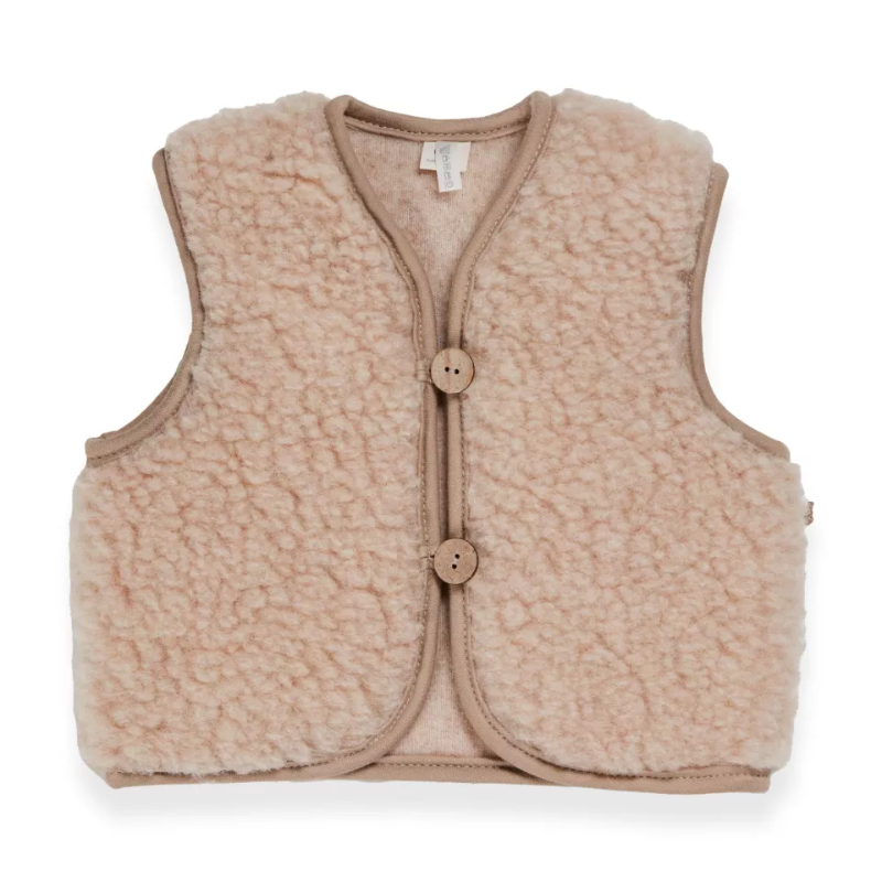 Het vest is gemaakt van 100% merinowol, een natuurlijke vezel die bekendstaat om zijn uitzonderlijke zachtheid en warmteregulatie. De knoopsluiting maakt het eenvoudig aan- en uit te trekken, en de zachte textuur voelt heerlijk aan op de tere huid van je baby. Zo blijft je kleintje comfortabel en stijlvol, ongeacht het seizoen.