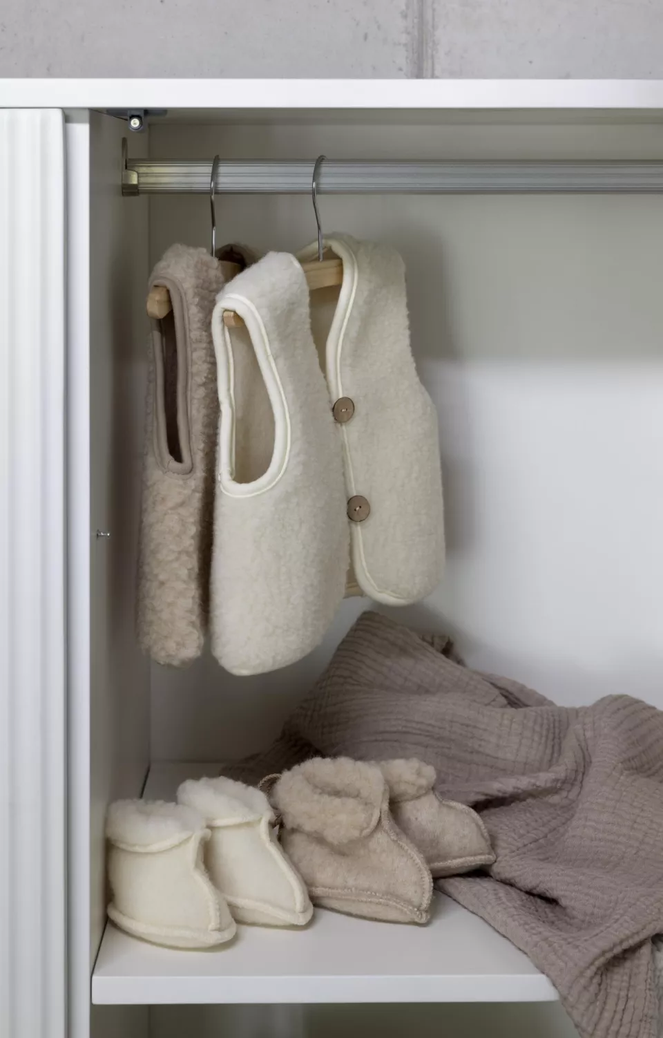 Het Quax Merinowol Vest is perfect te combineren met de merinowol slofjes van Quax, waardoor je een complete, warme en elegante outfit voor je baby creëert.