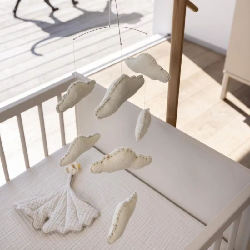 Naast de rustgevende werking is de quax mobiel wolkjes ook een mooi decoratief element in de babykamer. De zachte vormen en lichte uitstraling passen goed bij een rustige en natuurlijke inrichting.